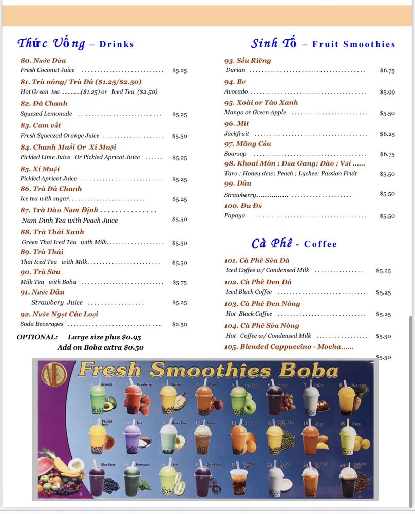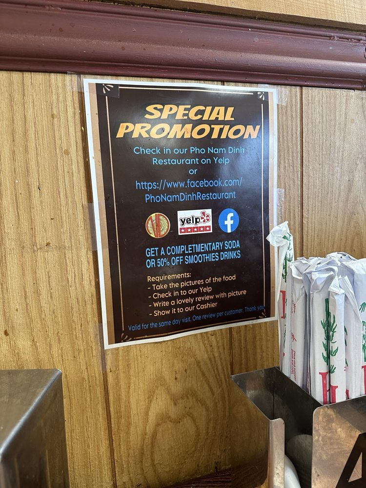 Pho Nam Dinh, a Vietnamese noodle restaurant located in Garden Grove, CA, offers a wide range of options for both meat lovers and vegetarians. The menu includes traditional pho dishes like bun thit nuong cha gio and special pho, as well as refreshing avocado and lychee smoothies. Customers rave about the rich broth and fresh ingredients in the pho, along with the generous portions that make for satisfying leftovers. The cozy atmosphere, attentive service, and diverse condiment options add to the overall dining experience. With excellent service, tasty dishes, and a welcoming ambiance, Pho Nam Dinh is a must-visit spot for pho lovers looking for a delicious and fulfilling meal.