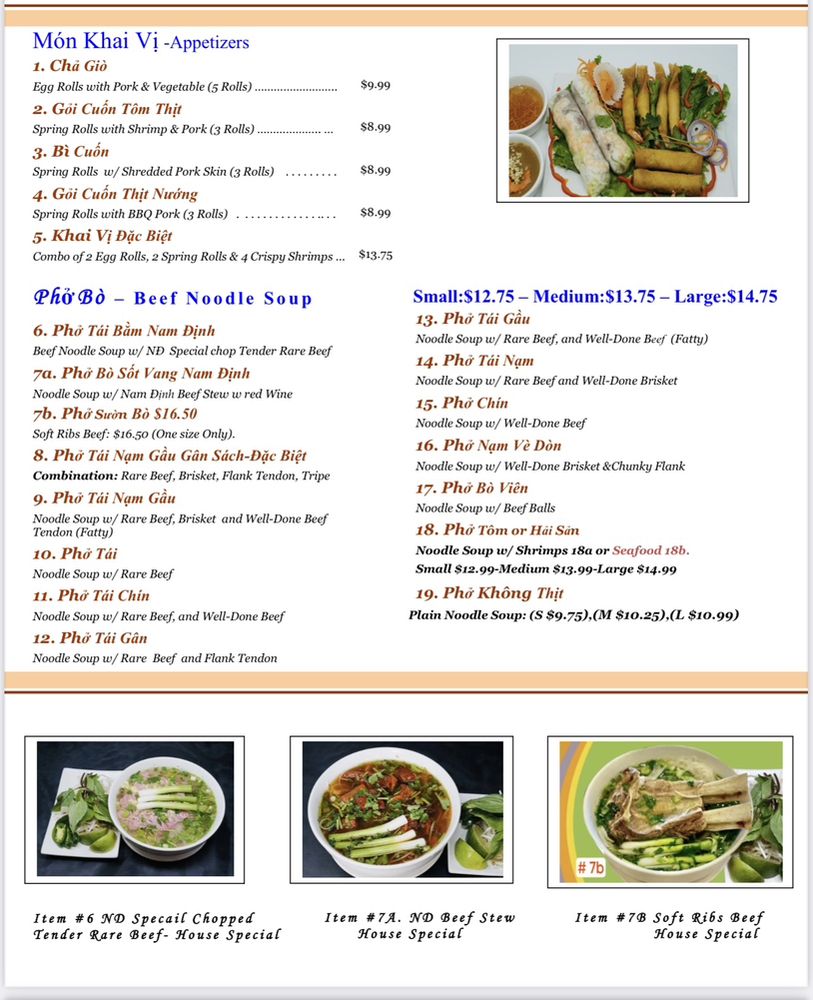 Pho Nam Dinh Menu (Update 2025)